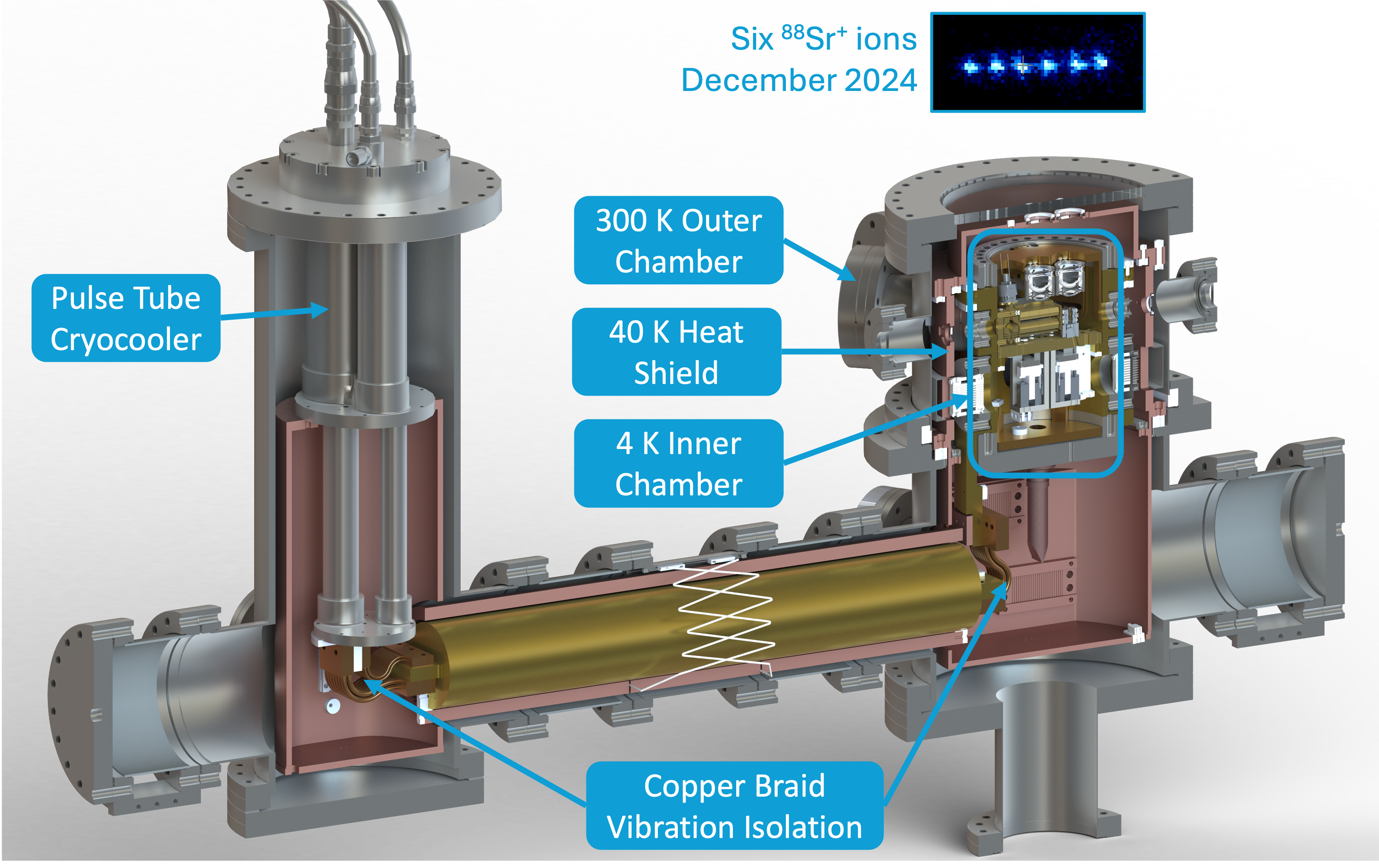 We aim to develop optical atomic clocks that are compatible with operation on satellites and in terrestrial field environments. This project sits at the intersection of quantum science and engineering, and requires the development of vibration-insensitive lasers [5] and robust ion traps with integrated photonics [6]. Ultimately, we hope to launch an optical clock on a high-Earth orbit for space-based tests of general relativity [7], dark matter searches, and very-long-baseline interferometry [8].